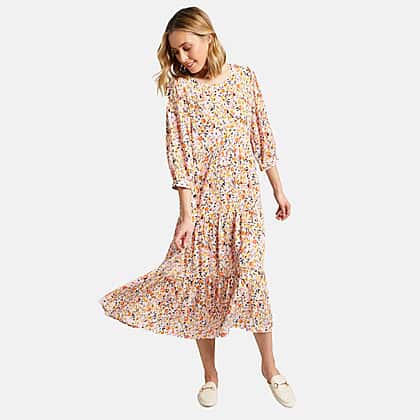Emreco Floral Crinkle Tiered Maxi Dress