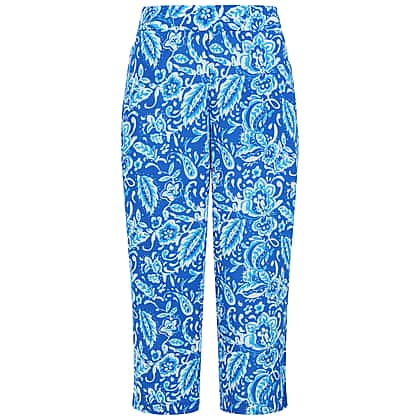 Step into effortless summer style with the Emreco floral paisley print lightweight crinkle wide leg culottes. Designed with a striking mix of blue and white tones, the all-over paisley pattern brings a fresh, feminine feel. The lightweight crinkle fabric is breathable and easy to wear, making these culottes a great choice for warm days or holidays. With a flattering wide-leg cut and elasticated waistband, they promise comfort without compromising on style. Pair them with a plain top and sandals for a relaxed daytime look or dress them up with accessories for evenings out.