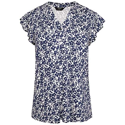 Emreco Short Frill Sleeves Floral Printed Top - White & Navy
