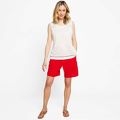 The tie-waist shorts by Emreco is a must-have addition to your summer wardrobe. It features a half-elasticated waistband with a fabric tie for additional support. These are loose-fitting and lightweight, perfect for summer wear.