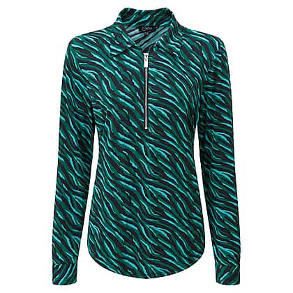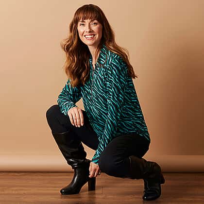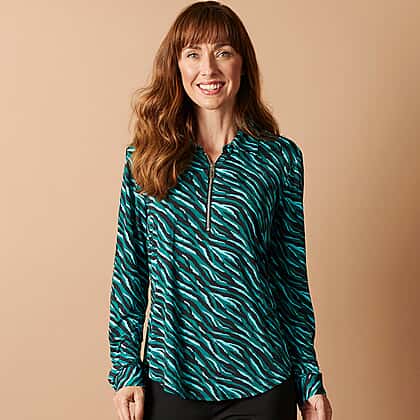 EMRECO Animal Print Zip Front Blouse - Turquoise