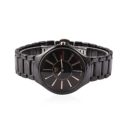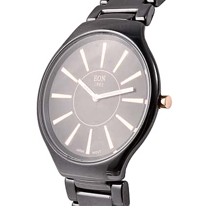 EON 1962 3ATM Water Resistant Watch in Stainless Steel with Black Ceramic Chain Strap and Butterfly Buckle