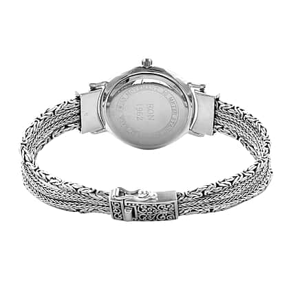 Royal Bali Collection - EON 1962 Swiss Movement Water Resistant Bracelet Watch (Size 8) in Sterling Silver, Silver wt 46.00 Gms
