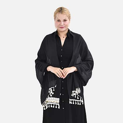 Closeout Deal - Scarf with Fringes and Beads - Black