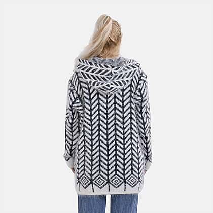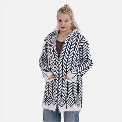 Tamsy Winter Coatigan with Hoodie (Size 8-20) Navy & White