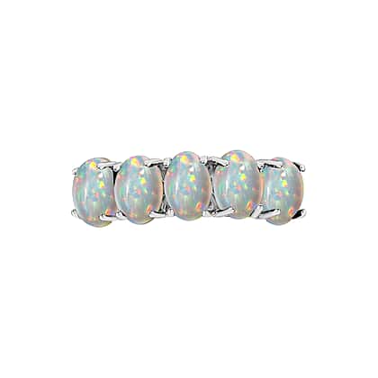 Ethiopian Opal 5 Stone Ring in Platinum Overlay Sterling Silver 1.88 Ct.