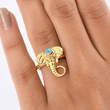 Ethiopian Opal Elephant Head Ring in Yellow Gold Plated Sterling Silver