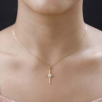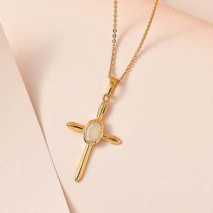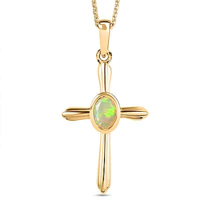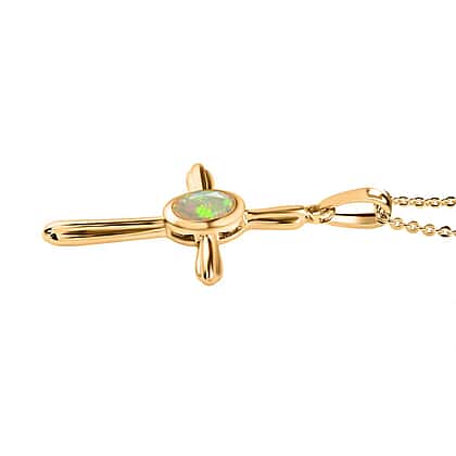 Ethiopian Opal Cross Pendant with Chain (Size 20) in Vermeil 18K Yellow Gold Plating Sterling Silver 0.500 Ct.