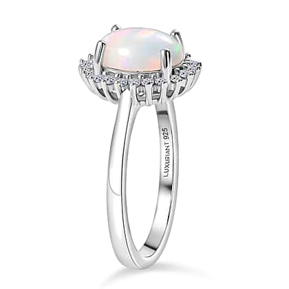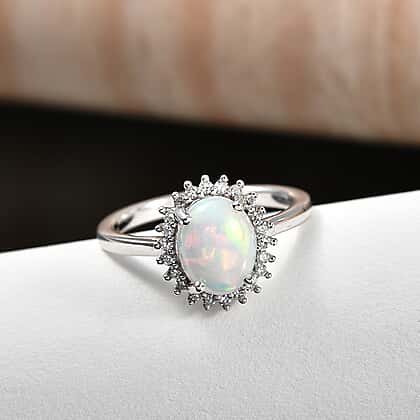 Ethiopian Opal & SI-G-H Lab Grown Diamond Halo Ring in Platinum Overlay Sterling Silver 1.45 Ct.