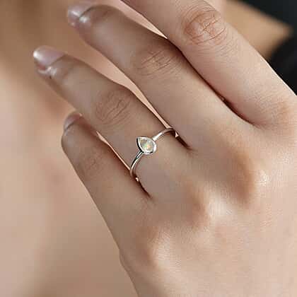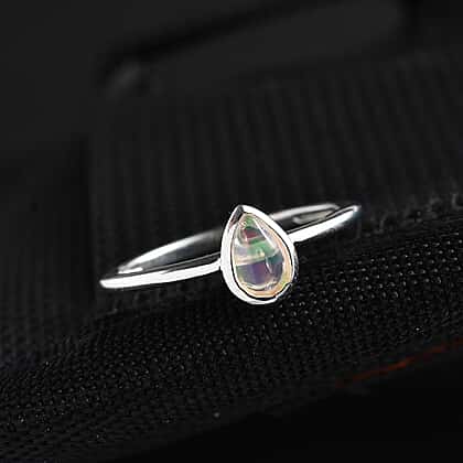 Ethiopian Opal Stackable Solitaire Ring in Sterling Silver