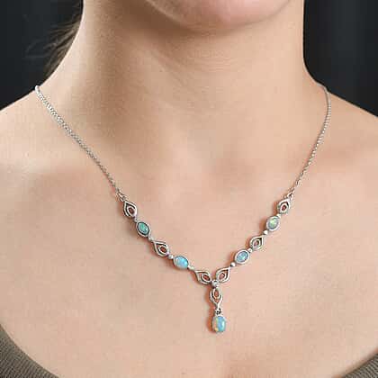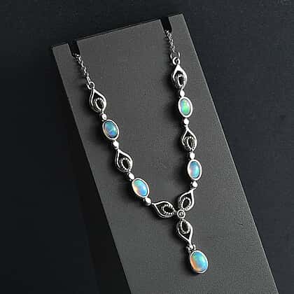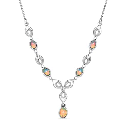 Ethiopian Opal & White Zircon Necklace (Size - 20) 1.63 Ct.