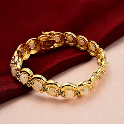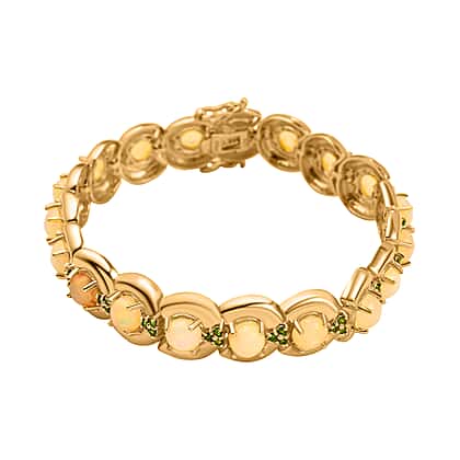 11.29 Ct. Ethiopian Welo Opal and Chrome Diopside Tennis Bracelet in Yellow Gold Plated Sterling Silver
