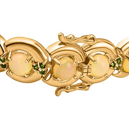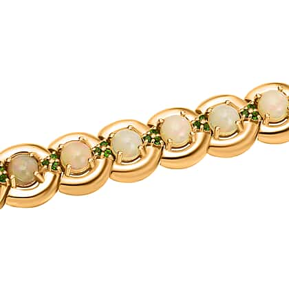 Ethiopian Welo Opal and Chrome Diopside Bracelet (Size 7) in Yellow Gold Vermeil Overlay Sterling Silver 10.15 Ct, Silver Wt. 22.97 Gms