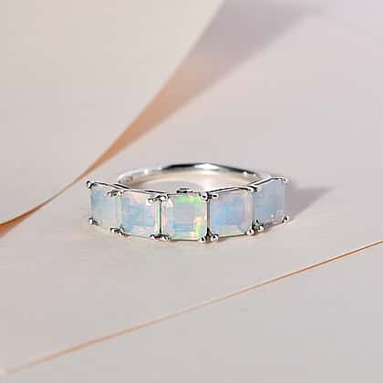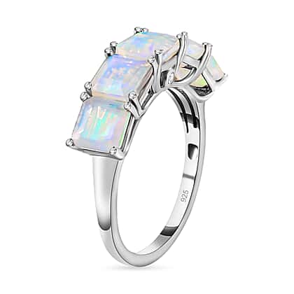 Ethiopian Welo Opal and Diamond 5 Stone Ring in Platinum Overlay Sterling Silver 2.00 Ct