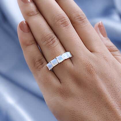 Adorn your finger with the mesmerising Ethiopian Welo opal 5-Stone Ring. This stunning ring features five captivating Ethiopian Welo opal gems, known for their enchanting play of colours, perfectly complemented by the sparkle of diamonds. The ring is crafted in platinum-overlay sterling silver, ensuring durability and a luxurious finish. The opal, symbolising hope and purity, makes this ring a meaningful addition to any jewellery collection. Whether for a special occasion or everyday wear, this ring adds a touch of charm and sophistication.