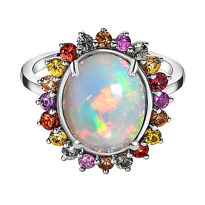Ethiopian Welo Opal and Multi Sapphire Ring in Platinum Overlay Sterling Silver 4.10 Ct.
