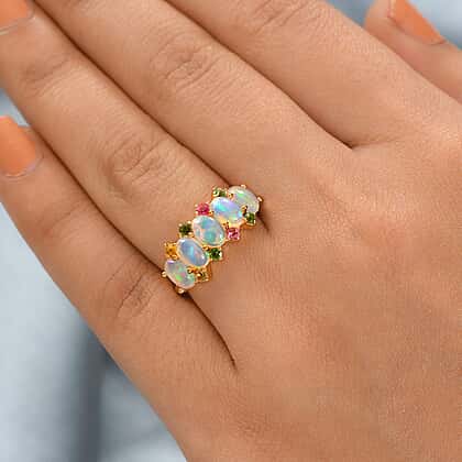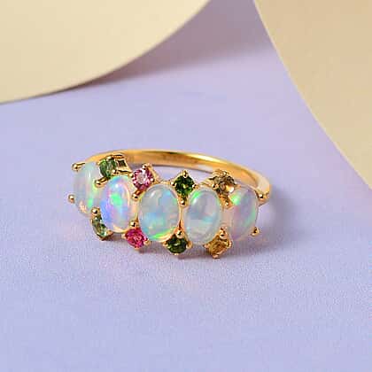 Ethiopian Welo Opal and Multi-Tourmaline Ring in 18K Vermeil Yellow Gold Plated Sterling Silver 1.75 Ct