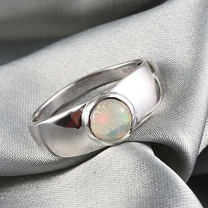0.50 Ct. Ethiopian Welo Opal Band Ring in Platinum Plated Sterling Silver