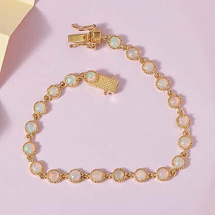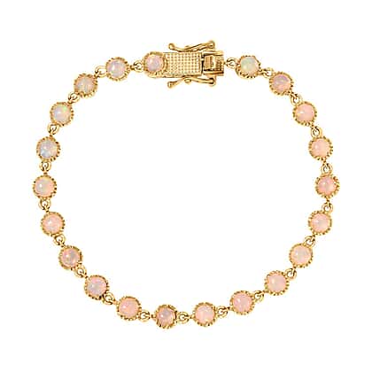 Ethiopian Welo Opal Bracelet (Size - 7) in 18K Yellow Gold Vermeil Plated Sterling Silver 3.90 Ct, Silver Wt. 7.55 Gms.