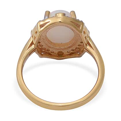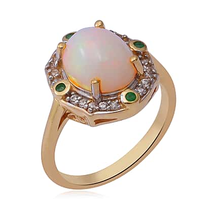 2.66 Ct. Ethiopian Opal, Emerald and White Zircon Ring in Yellow gold Plated Sterling Silver