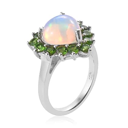 Ethiopian Welo Opal (Hrt 2.250 Ct), Chrome Diopside Ring in Platinum Overlay Sterling Silver 3.650 Ct.
