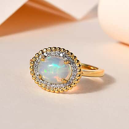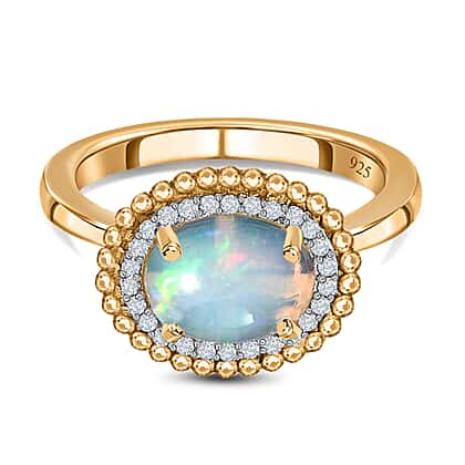 Ethiopian Welo Opal & Natural Zircon Ring in 18K Yellow Gold Vermeil Plated Sterling Silver 1.27 Ct.