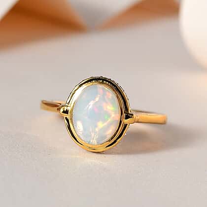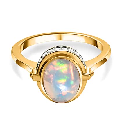 Ethiopian Welo Opal & Natural Zircon Ring in 18K Yellow Gold Vermeil Plated Sterling Silver 1.39 Ct.