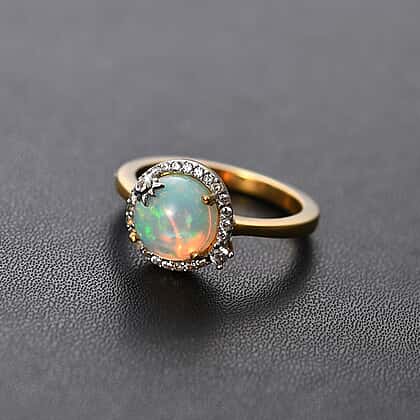 Ethiopian Welo Opal & Natural Zircon Ring in 18K YG Vermeil Plated Sterling Silver 1.45 Ct