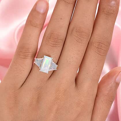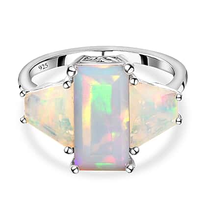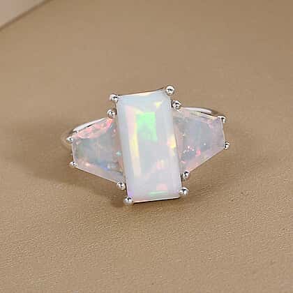 Ethiopian Welo Opal Ring in Platinum Overlay Sterling Silver 3.03 Ct.