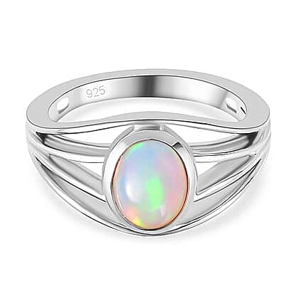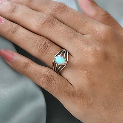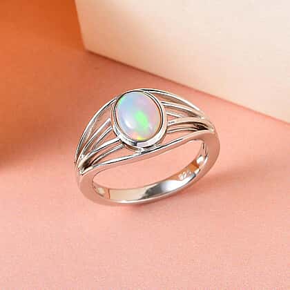 Ethiopian Welo Opal Ring in Platinum Overlay Sterling Silver