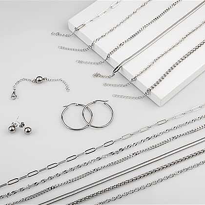 - METAL FINISH: This 15 piece jewellery set comes in a glossy mirror-like finish of 18K White Gold IP Plating