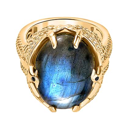 EverTrue Labradorite & Black Spinel Ring in Yellow Gold Plated 11.72 Ct.