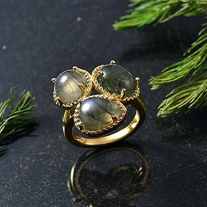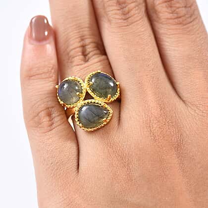 EverTrue Labradorite Ring in Yellow Gold Plated 7.37 Ct.