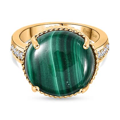 EverTrue Malachite & White Zircon Solitaire Ring in Yellow Gold Tone 12.28 Ct.