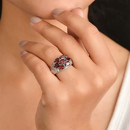 EverTrue Natural Mozambique Garnet Cluster Ring 3.84 Ct.