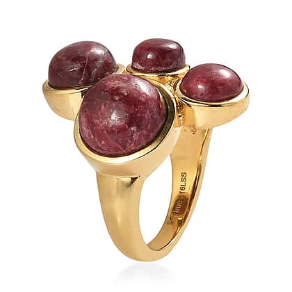 EverTrue Natural Thulite Ring in Yellow Gold Plated 11.83 Ct.
