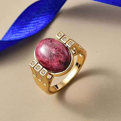 EverTrue Thulite & White Cubic Zirconia Ring in Yellow Gold Tone 12.45 Ct.