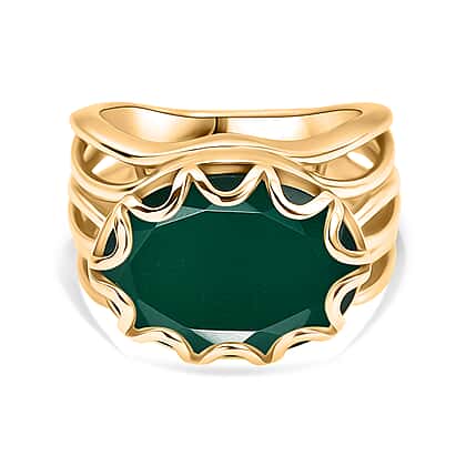 EverTrue Verde Onyx Solitaire Ring in 14K Yellow Gold Plating Sterling Silver 7.59 Ct, Silver Wt. 6.10 Gms.