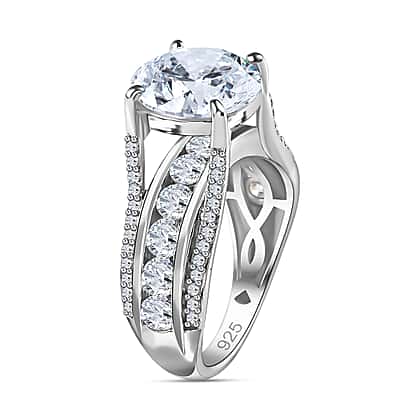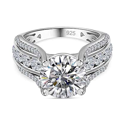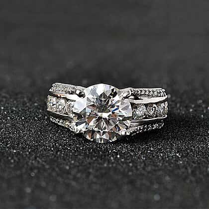Exclusive Edition - Moissanite Bridge Ring in Platinum Overlay Sterling Silver 4.98 Ct, Silver Wt. 5.49 Gms