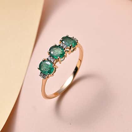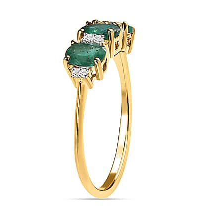 Exclusive Gems from India - 9K Yellow Gold AAA Gemfield Premium Emerald and Diamond Band Ring 1.09 Ct.