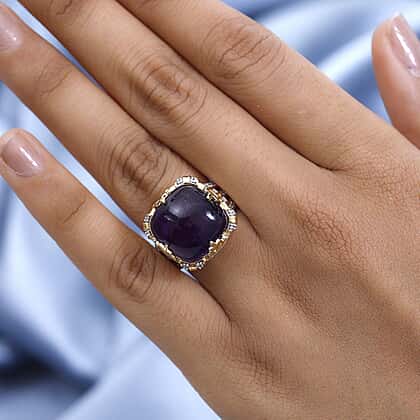 Exclusive Gems from India - Amethyst and Natural Zircon Crown Ring in 18K YG Vermeil Plated Sterling Silver 18.13 Ct, Silver Wt. 6.12 Gms