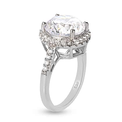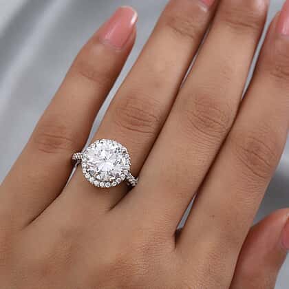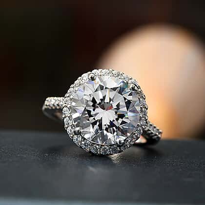 Lustro Stella Finest CZ 10.55 Ct. Halo Ring in Platinum Plated Sterling Silver