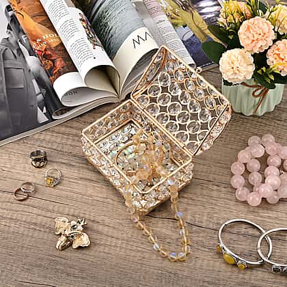 Preserve your precious jewels in the Chest Crystal Jewellery Box, a blend of classic charm and sparkling elegance. This box, adorned with radiant crystals, provides a secure and stylish space for your treasured items. Its chest-like design offers ample room for various jewellery pieces, making organisation effortless. This jewellery box is ideal for adding a touch of luxury to your vanity. It is perfect for those who cherish sophisticated storage solutions and timeless beauty in their home decor.