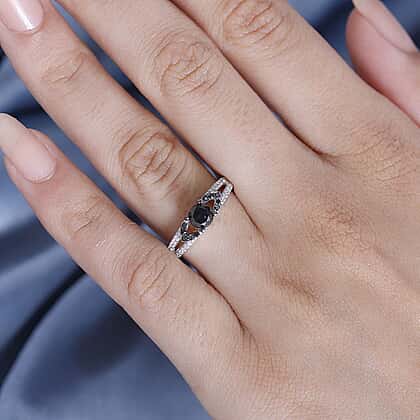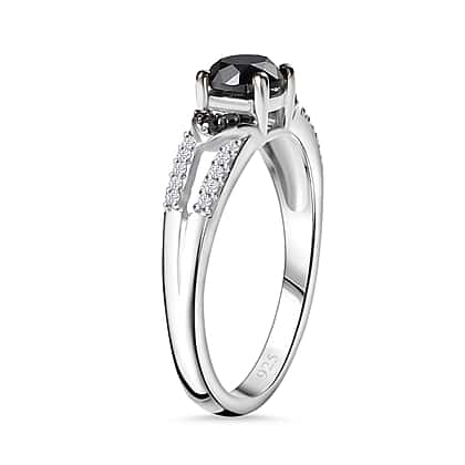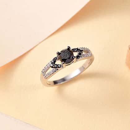 Extreme Rare Find - Natural Black Diamond and White Diamond Ring in Rhodium Overlay Sterling Silver