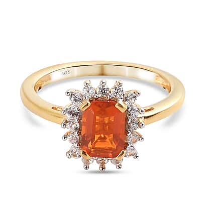 1.05 Ct. Fire Opal and Zircon Ring in 14K Gold Plated Sterling Silver
