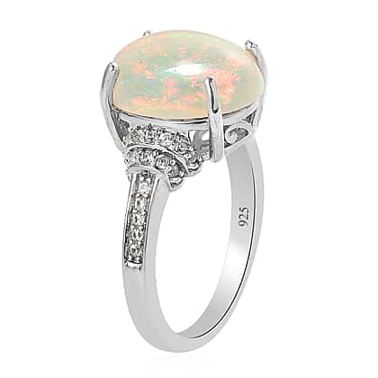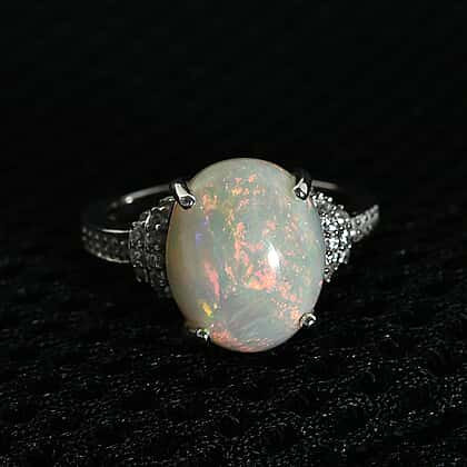 3.75 Ct Wegel Tena Opal and Natural Zircon Ring in Platinum Plated Sterling Silver