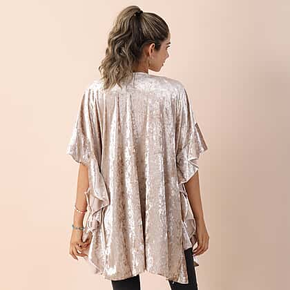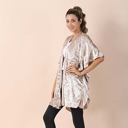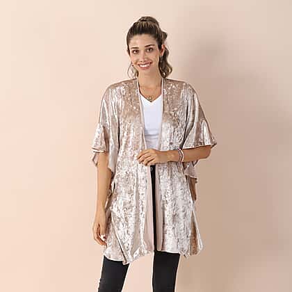Falbala Sleeves Velvet Kimono (Size 83x70 Cm) - Off White