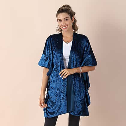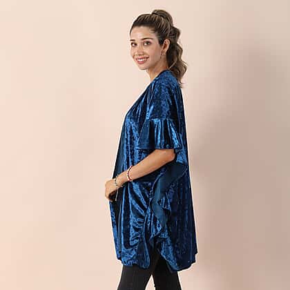 Falbala Sleeves Velvet Kimono (Size 83x70 Cm) - Royal Blue