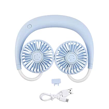 Portable Neck Fan with USB Rechargeable (1200mah) -Blue
