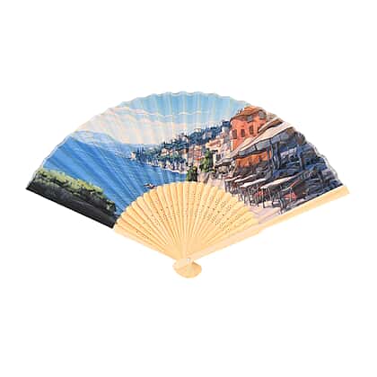 Set of 2- Artistic Seaside Bamboo Folding Hand Fans Or Wall Art (21cm)